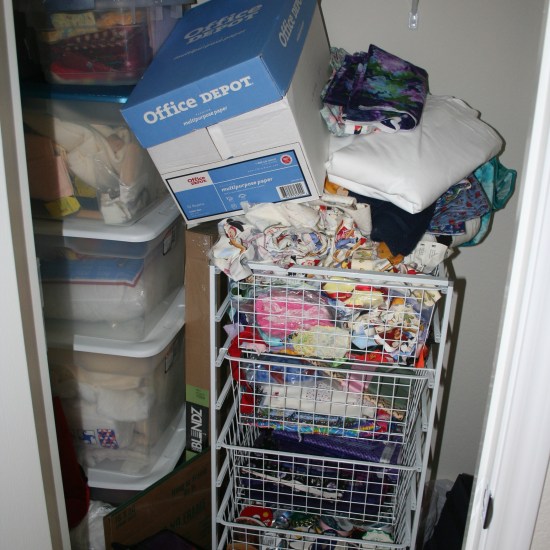 The problem is, the “system” I’ve come up with doesn’t work. It’s not really functional – the fabric is hidden in the closet, which means every time I want to use a stash piece, I have to dig for it. Further, I only ever really dig for fabric if I remember that I have something useful for the project. What’s the point of having a stash if you never remember to check it out?!
