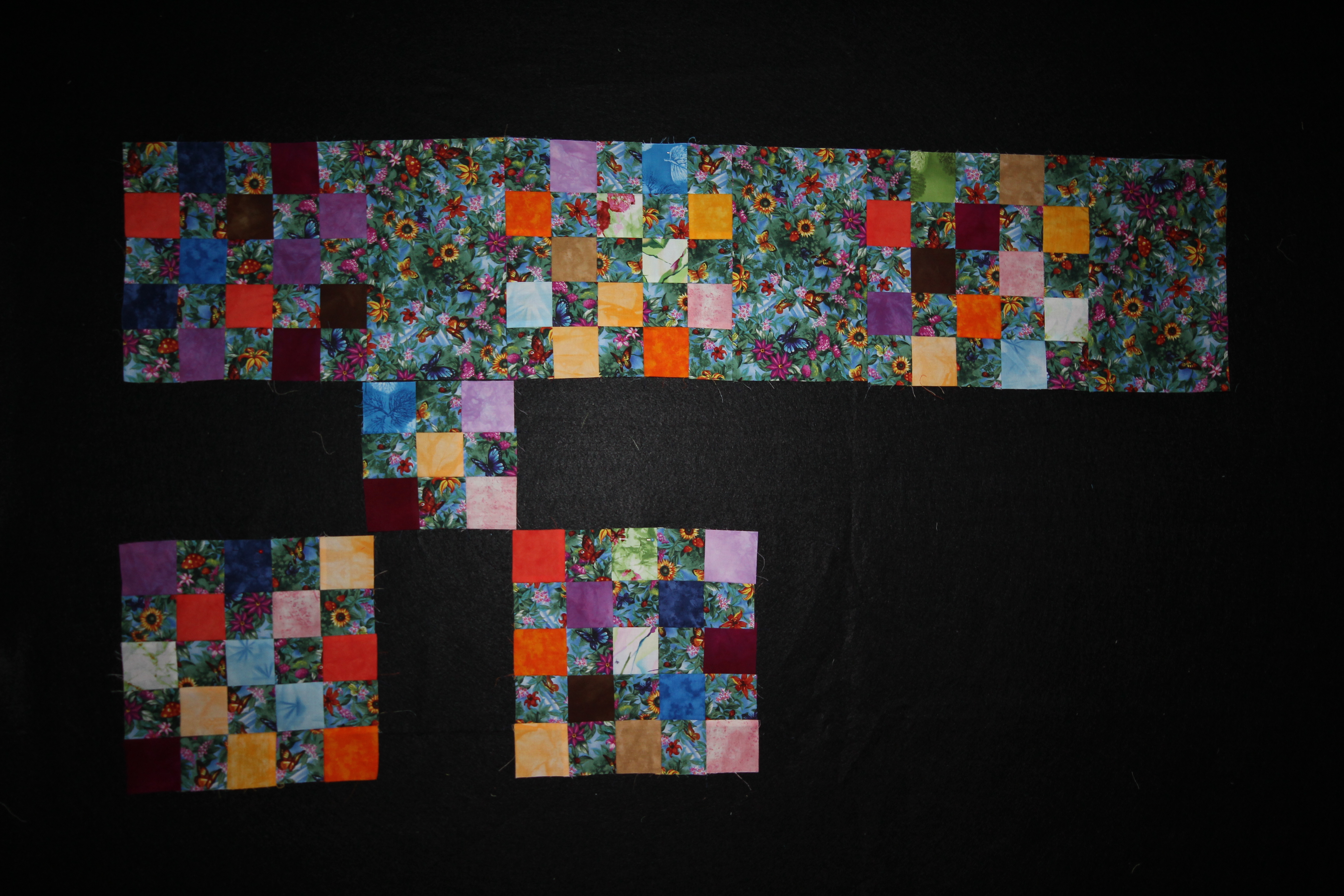 Although I’m really loving the quilt I’m making right now for my friend Heather, I have to confess that I haven’t made much progress on it, and the reason for that is fairly simple. As you might recall, I posted over the weekend about my daughter moving up her wedding date. Fortunately, they have made another schedule change, pushing the date back to mid-October. Still, there was a flurry of activity for several days that left me exhausted both physically and emotionally, and little was done on Heather’s quilt. Still, I share with you the progress to date …