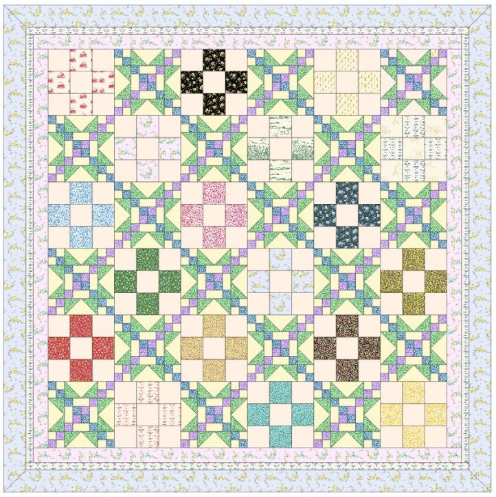 In the interest of full disclosure, I have to tell you that I also have an Accuquilt Go! cutting system, and I love it. I’ll write about it in a later post, but for now I will say that when it comes to standard shapes, I don’t believe you can do better than the Accuquilt Go! system. It really is the best thing I’ve found when it comes to cutting shapes in standard sizes. What I think it doesn’t do well is applique (I’ll explain in that later post) and odd sizes for standard shapes. It isn’t the fault of the Accuquilt system, but it is a limitation. For example, I designed the quilt I’m working on right now. It has two blocks – the standard nine patch, and what EQ 7 called a Frayed Sawtooth Star block. I designed the quilt to use 9″ blocks, and the frayed sawtooth star uses some fairly small pieces at that size – 1 5/8″ squares, for example. That’s not a standard size, obviously, so Accuquilt doesn’t have a die that size. But the one that really stumped me was the 5 11/16″ square. Unsure how to cut that with a ruler, and not realizing that in EQ 8 (I upgraded since I designed the pattern originally) I could choose 1/8″ or 1/16″ increments, I didn’t really know how to cut squares this size.