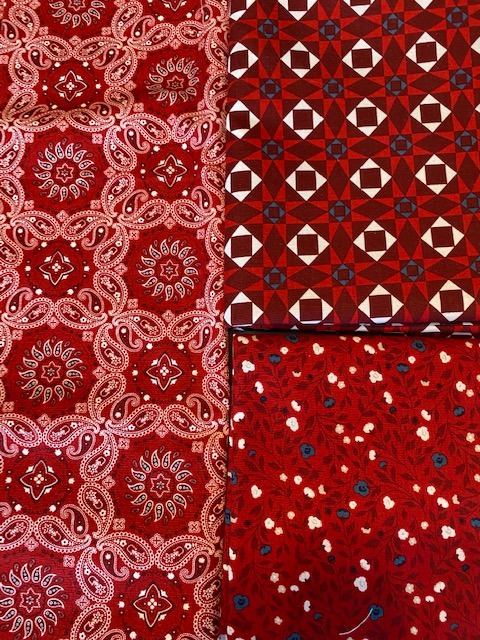 I’m also digging through my scraps for the Lori Holt Bee Patriotic quilt along which starts this week. I have a lot of fabric from the American Legacy line that I plan to use, and I considered bringing in some scraps to expand the color palette a little, but at this point, I’m up in the air about it. I really wanted to be in a position to get started on this quilt this week, but I just don’t think that’s going to happen. But I do love this color palette. I will use a lot of cream to keep it from being so heavy. And if I could find a lighter blue that would work with this, I think that would be great.