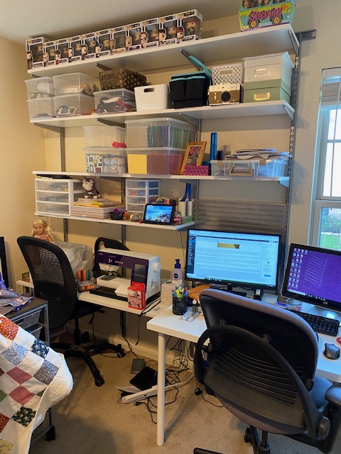 My next studio project is to add a table for the Viking, and to replace the bookcase where that table will go with some wall shelving from Container Store. I think once that’s done, I will be quite happy with my studio space, even though it overflows in to our bedroom. I love what I have completed so far, but there is still a fair amount of work to be done.