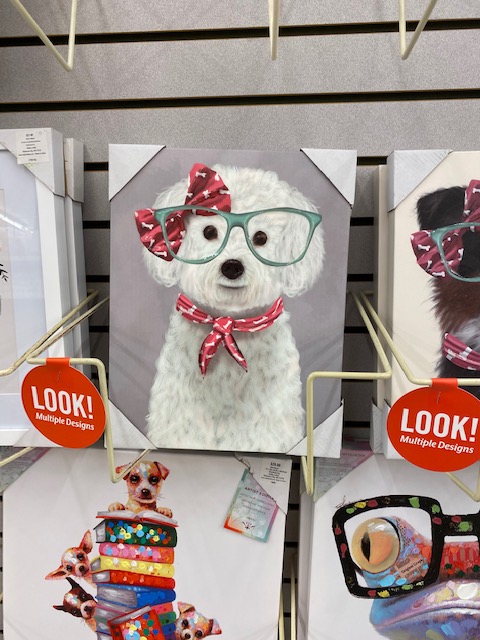 It’s not really clean at this point, but I’m working on it. And again, please overlook the floor. It’s not nearly as dirty as it looks in these photos. LOL If we owned this house, the floor in my studio would be laminate, because it’s easy to care for and isn’t carpet. I have a deep and abiding intense dislike for carpet. You can tell from the two fans in here that this room is probably the hottest in the house. Around mid-morning, I will lower the blinds over the desk to keep it from getting too hot, but it will still be quite warm by the end of the day. Still, it’s my little slice of heaven. I have a couple of small wall hangings to put up, my big poster you can see the top of in the photo just above this paragraph, and some other things that make me smile. I’m not one of those who will put something like “Create” or “Make” on my wall; it’s just not my style. I want things that are pretty, colorful and that will make me smile or laugh when I see them. I bought this adorable picture at Hobby Lobby this weekend, and I can’t wait to get it on my wall.