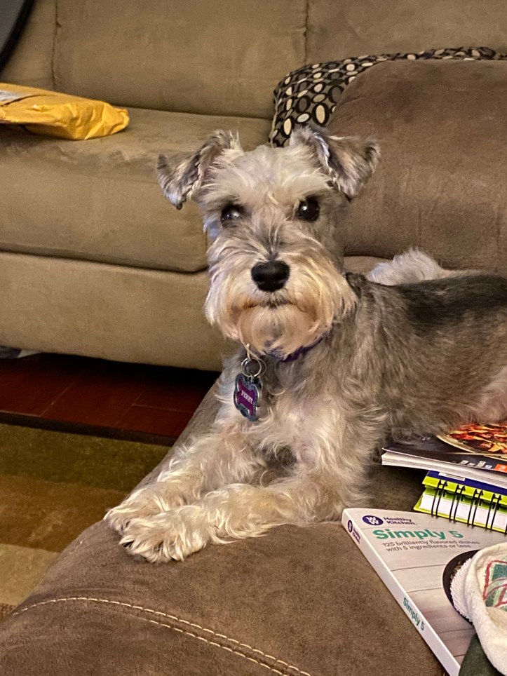 Secondly, I really need to make Penny a quilt. Who’s Penny, you ask? She’s our new Miniature Schnauzer. We adopted her in December.
