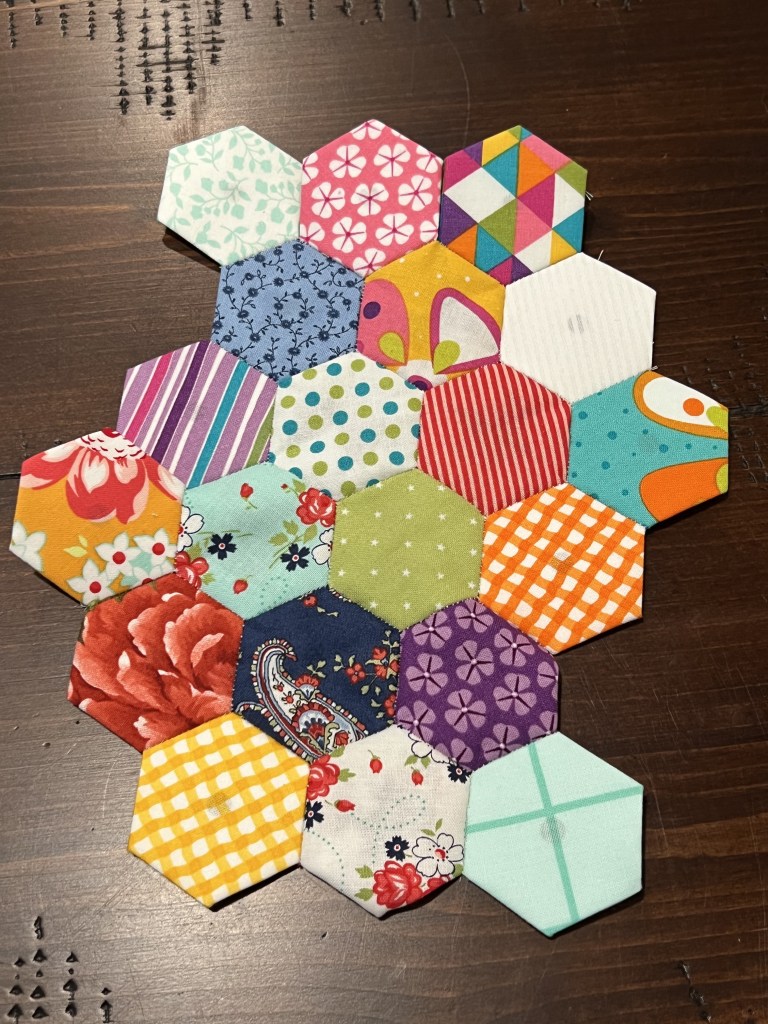 So far, I’ve used it to cut out shapes for a hexie quilt I decided to make by hand. I haven’t ever done this, either, but so far I’m enjoying it. It’s slow going, but I have hope that over time, I will get faster.
