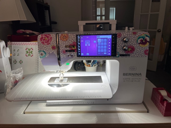 Sewing machines for me are like potato chips – you can’t have just one. Trust me, I’ve tried, and I fail miserably. Last July, my local quilt shop had a floor model sale. I had been scoping out the Bernina 790 PRO for a while at that point, and was intrigued by the features it offers, primarily around embroidery, but also with an interest in the sewing features. Alas, the 790 PRO wasn’t included in the floor model sale, so I purchased the 770QE Kaffe Edition, and I have loved that machine since I got it home. But I still think about those PRO features all the time.