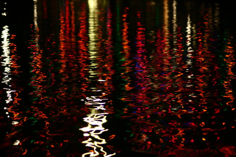 Christmas lights reflected on the San Antonio River